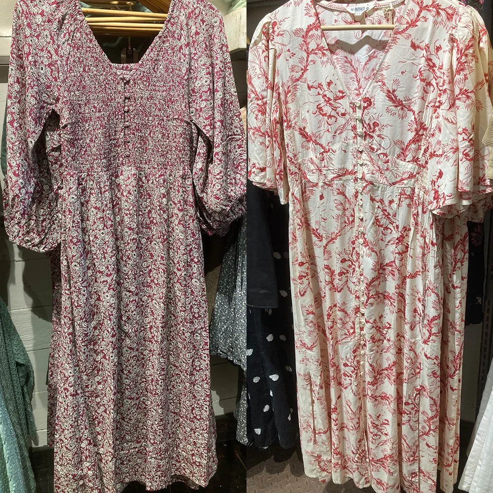The main thing connecting these two dresses is that they have a lot of white on them. The one on the left is technically “plum” (according to the website, I think it looks more red in real-life). I think someone had actually put it back on the rail the wrong way round as the website shows it has buttons at the back instead of the front, but it’s a lovely dress nonetheless.